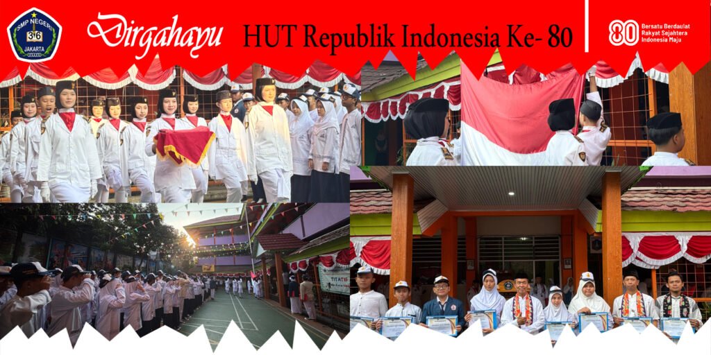 UPACARA PERINGATAN HUT REPUBLIK INDONESIA KE-80 SMPN 36 Jakarta Dalam rangka memperingatu Hari Ulang Tahun Kemerdekaan Republik Indonesia yang ke-80 Tahun 2025, SMP Negeri 36 Jakarta melaksanakan upacara bendera dengan penuh khidmat di lapangan sekolah. Acara dimulai pukul 06.30 WIB, diikuti oleh seluruh siswa, guru, tenaga kependidikan, serta perwakilan orang tua siswa. Kepala Sekolah SMP […]
